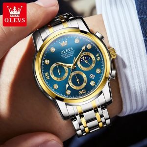 Product details of OLEVS 2889 Fashion Quartz Watches For Men Waterproof Stainless Steel Strap Multi-function High Quality Men Wristwatches Luminous